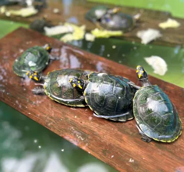 Además, como parte de su aprovechamiento, los trabajadores como Samuel ayudan en el repoblamiento de las más delicadas tortugas charapas (Podocnemis expansa), que se encuentran en peligro crítico de extinción, a diferencia de las taricayas, hoy en estado vulnerable.